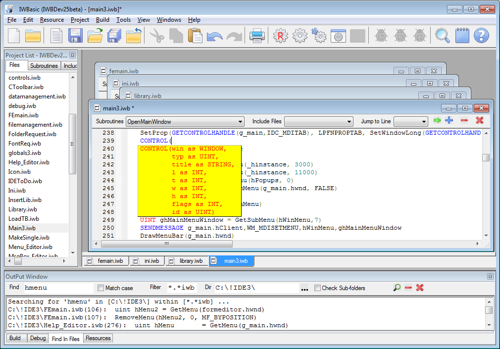 IWBasic is a full featured 32 bit compiler for the WindowsT operating system. Creates small, fast executables and DLL's. IWBasic supports both procedural and OOP style programming.