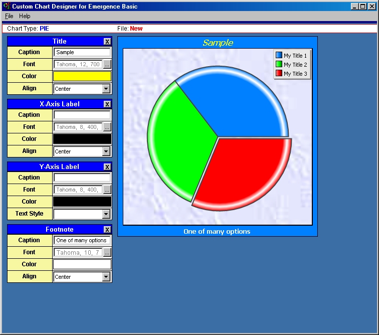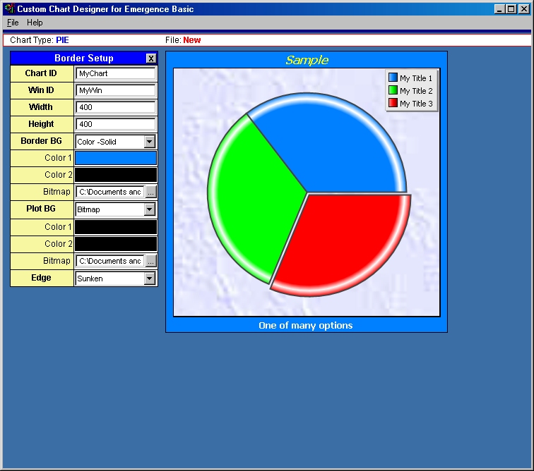 - Color or Bitmap background selectable for chart and plot backgrounds.
